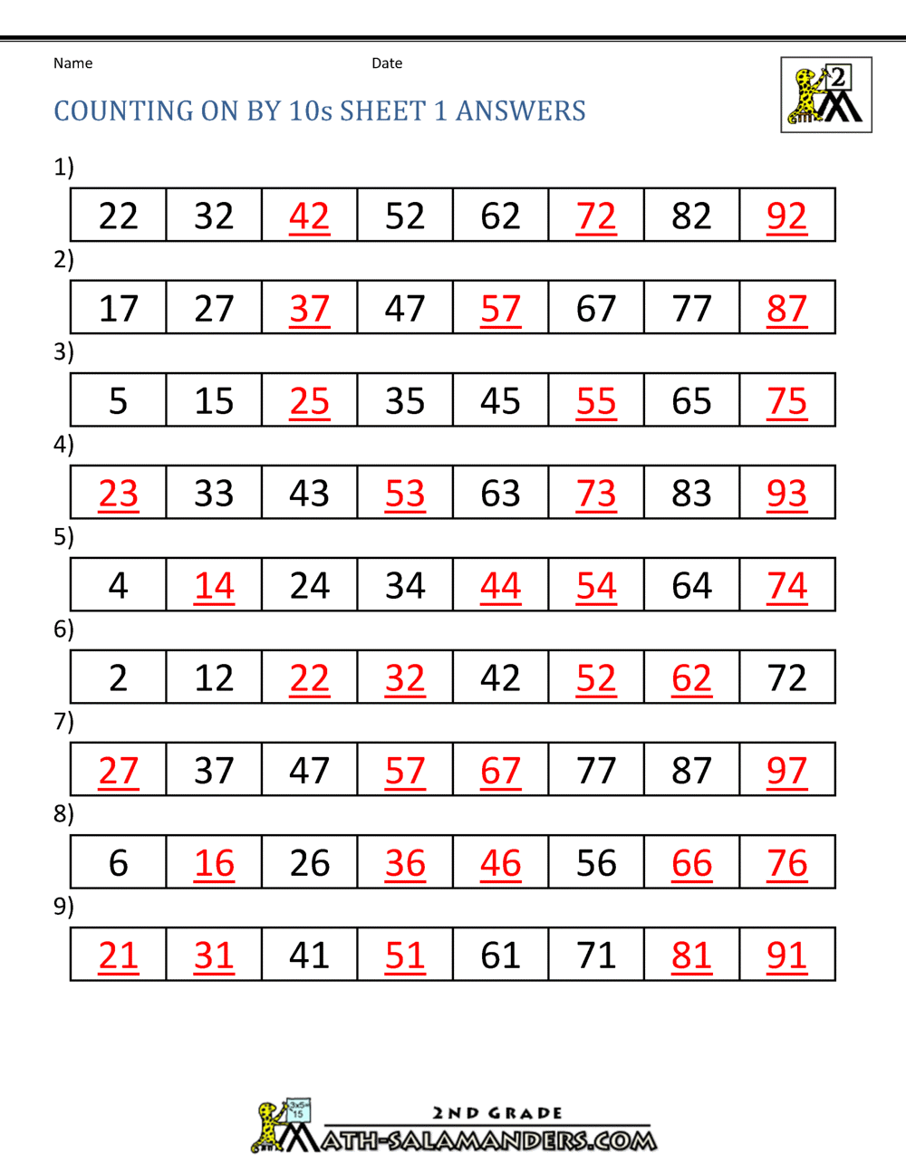 2.nbt.a.1, 2.nbt.a.1a, 2.nbt.a.1b, 2.nbt.a.2, 2 . Welcome to the 2nd grade math salamanders free count by tens worksheet page. Worksheet / tens and ones all important questions / class 2 maths ncert /. Value » count in steps of 2, 3, and 5 from 0, and in tens from any number. Award winning educational materials like worksheets, games, lesson plans and activities designed to help kids succeed.